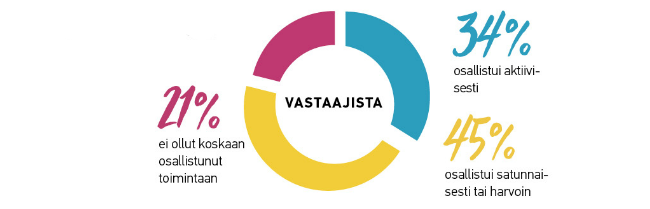 - Halukkaat pääsevät mukaan toiminnan järjestämiseen, tuumaa 63 % toimintaan osallistuneista.
